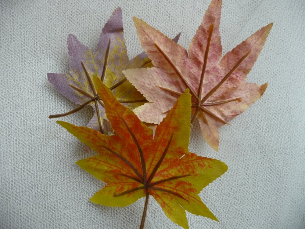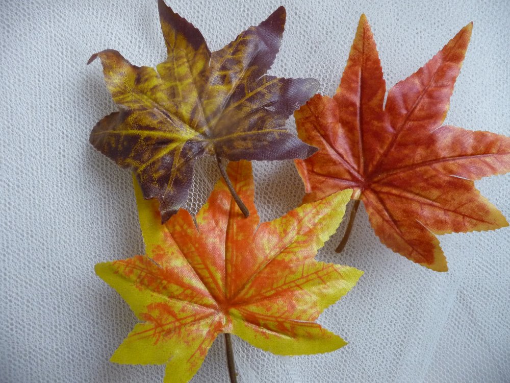 3 GRANDES FEUILLES EN TISSU - TONS D'AUTOMNE - DECORATION FLORALE, HOME DECO, COLLAGES,