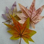 Voici 3 grandes feuilles décoratives en tissu, tons d'automne (jaune/verdâtre, marron tirant sur le roux) que vous pourrez utiliser pour vos décorations, collages, mixed-média, compositions, créations diverses ...