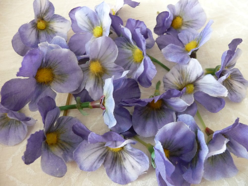 Ensemble de 10 fleurs en tissu, couleur mauve, avec coeur jaune