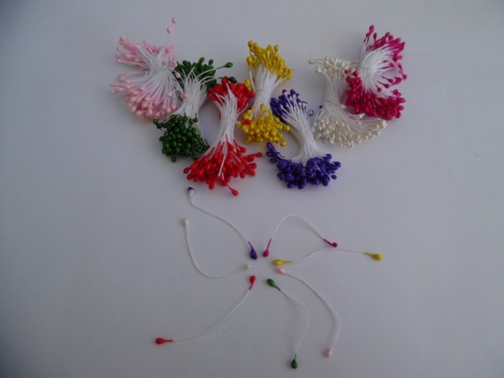 Lot de 12 tiges étamines pistils fuchsia nacrées 5cmx2/3mm