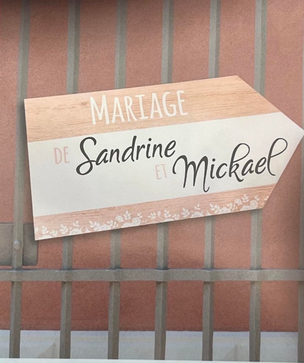 Flèche directionelle "MARIAGE DE " collection Bois de rose - recto - verso- 20 x 40 cm.