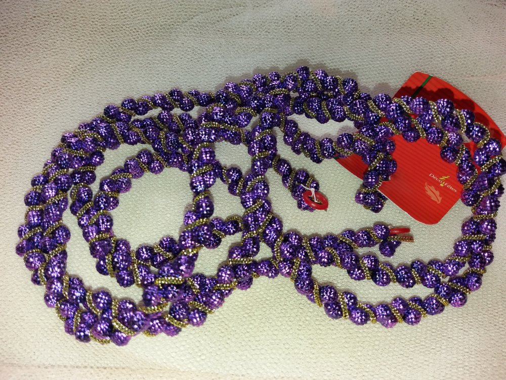 Guirlande perles violettes et fils dorés, double rang de perles - pour décorer et embellir