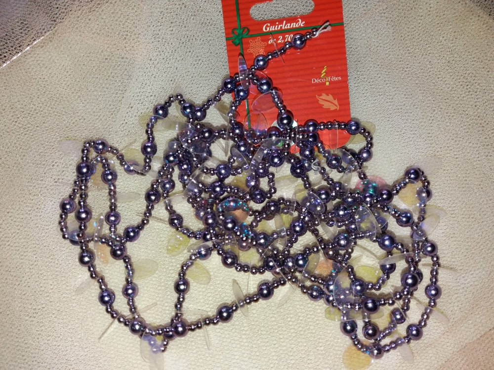 Jolie guirlande pour fêtes, décoration intérieure, embellissements, de 2 m 70, couleur mauve, avec pastilles transparentes irisées.