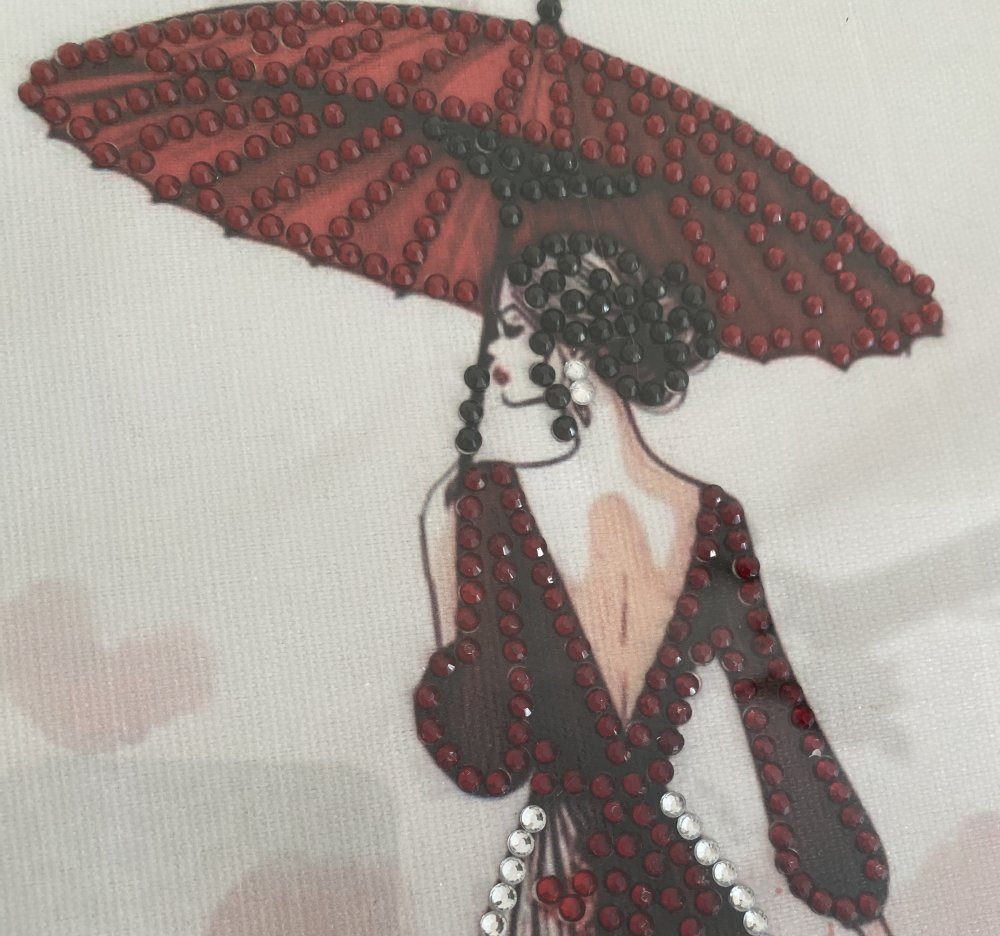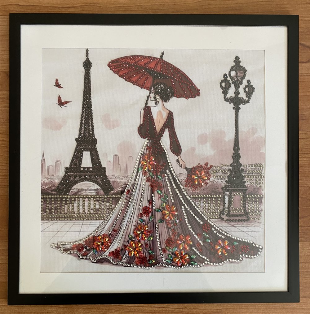 - Magnifique tableau diamants painting plein de charme, très détaillé et coloré, illustrant une femme élégante en robe fleurie rouge face à la Tour Eiffel. Les strass multicolores ainsi que les perles, posés partiellement, font briller la scène avec raffinement. A savoir : Reflets plus brillants au naturel.