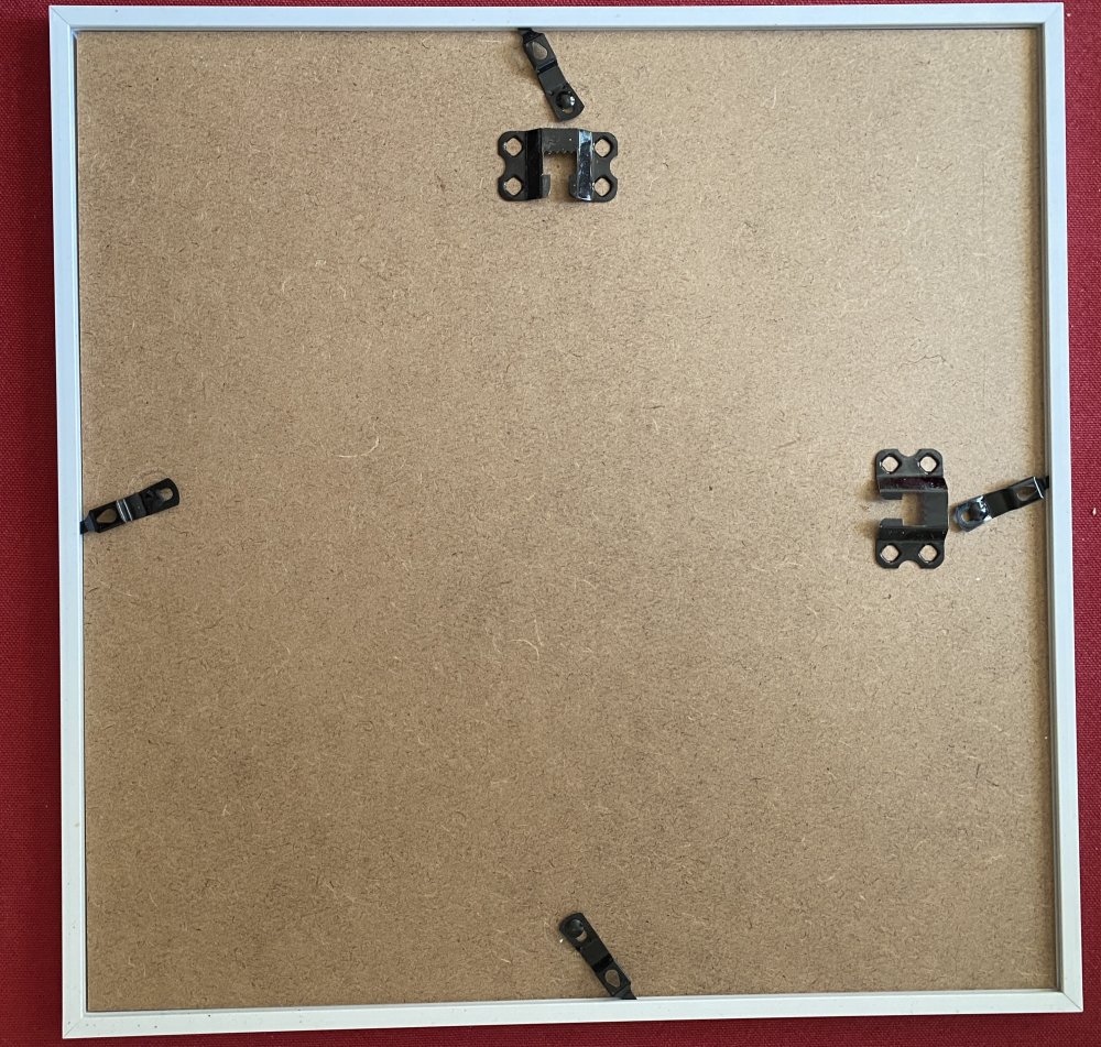 - Encadré dans un élégant cadre noir avec passe-partout (encadrement papier, carton) coupé sur mesure par moi-même et verre en plexiglas transparent. Le cadre est fabriqué en bois synthétique très robuste. Il est doté de plusieurs clips pivotant sur le support en carton. Très facile à fermer. Attache au mur jointe. Voir photos.