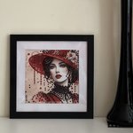 Tableau encadré, tableau diamants painting, tableau Femme au chapeau rouge, 20x20 cm