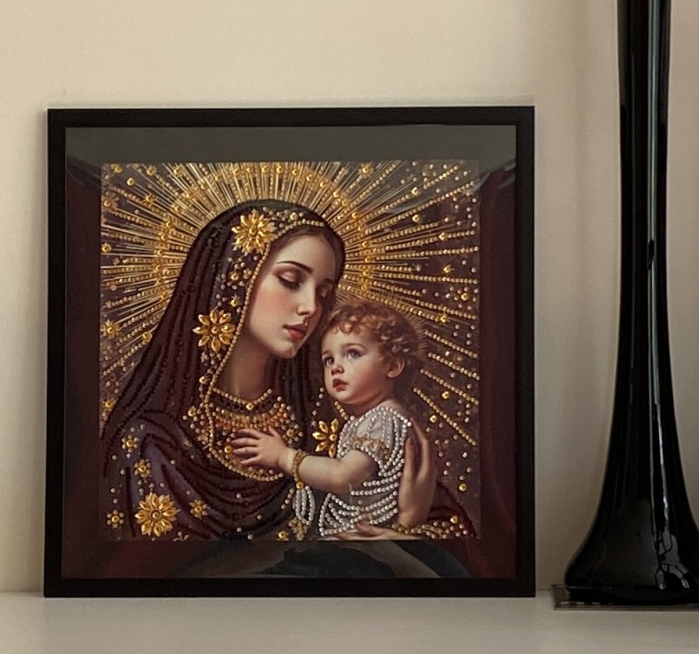 Tableau encadré, tableau diamants painting, tableau Marie et son enfant Jésus , 30x30 cm