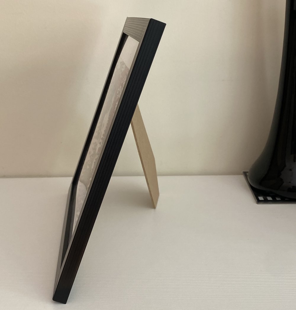 - Encadré dans un cadre moderne noir avec passe-partout (encadrement papier, carton) coupé sur mesure par moi-même et verre en plexiglas transparent. Le cadre est fabriqué en bois synthétique très robuste. Il est doté de plusieurs clips (voir photo).Très facile à fermer. Décoration murale ou sur bureau.