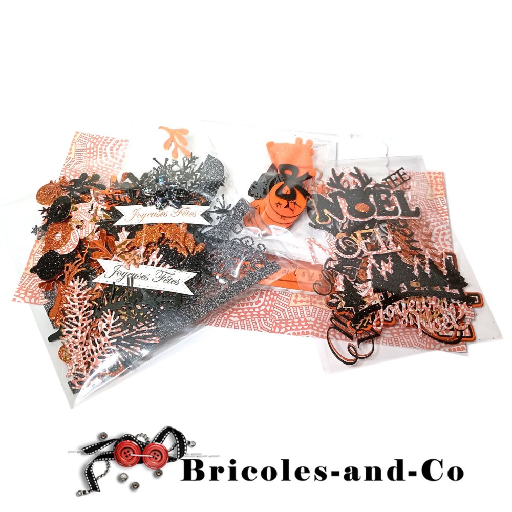 - Figurines bois en noir : 1noeud, 1sapin, 1étoile .en gris 2 boules, en orange 6 rond motif étoiles
