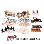 21 texte : 1 Noel (triple couleur)11cmx7cm, 2 noël (2couches) 7cmx2cm, 2Joyeux noël sapin 9.5cmx6.5cm, 3 Bonne année 9cmx4cm, 2 bonne année 9cmx4cm, 2 meilleurs vœux papier 10cmx4cm, 1noel pendentif (renne),2 cercles meilleurs vœux 5cm, 1 noël 6.5cmx5cm (corne) , 5 noël petit 3.5cm