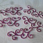 ce très beau lot de 5 formes de découpe en forme de tourbillon ton fuchsia pailleté en carton.