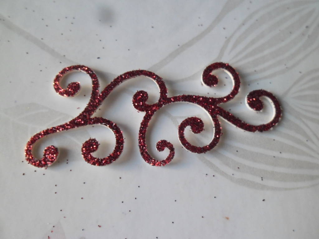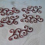 ce très beau lot de 5 formes de découpe en forme de tourbillons ton rouge pailleté en carton.