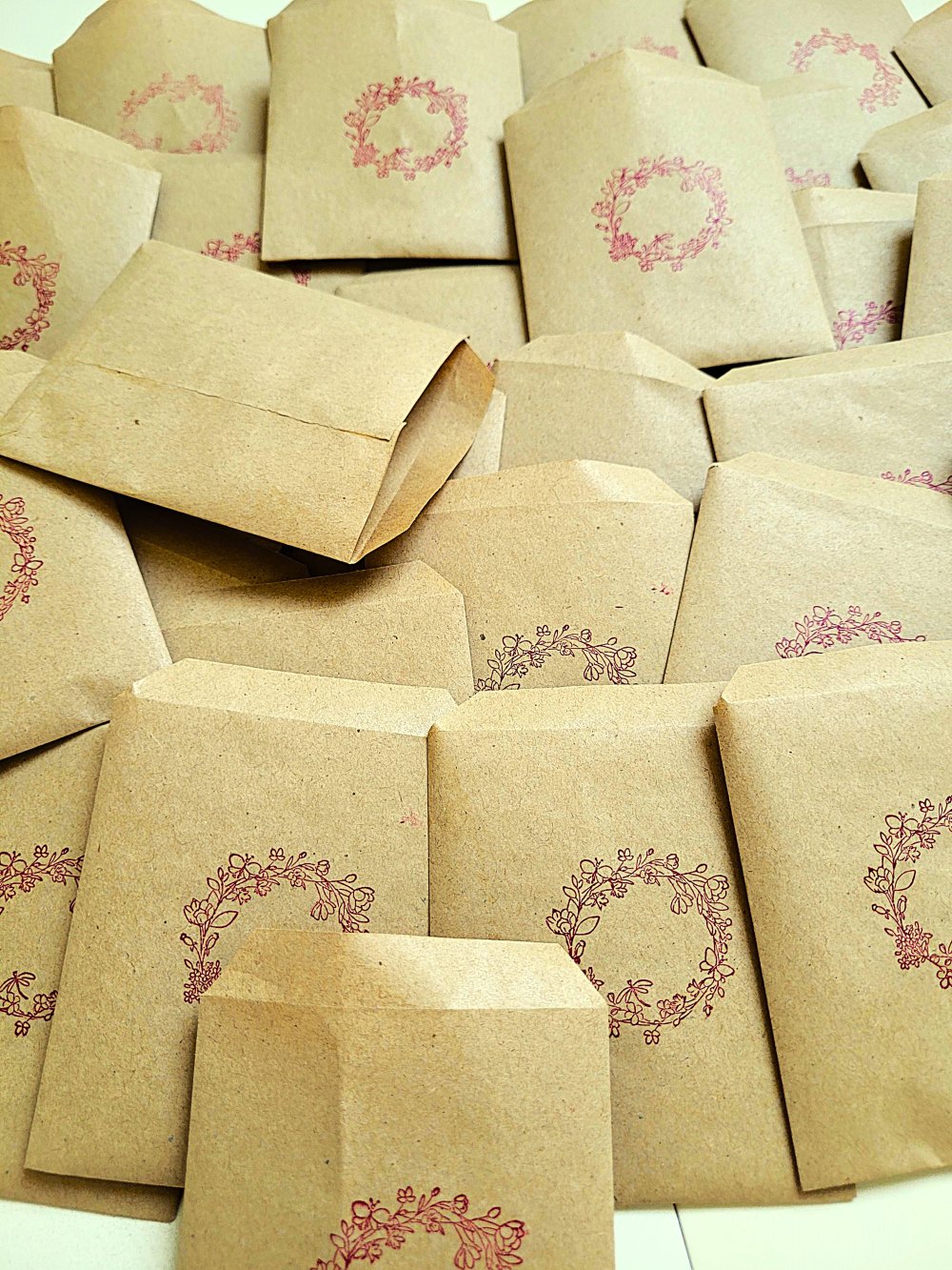lot de 40 sachets en papier kraft avec couronne de fleurs bordeaux