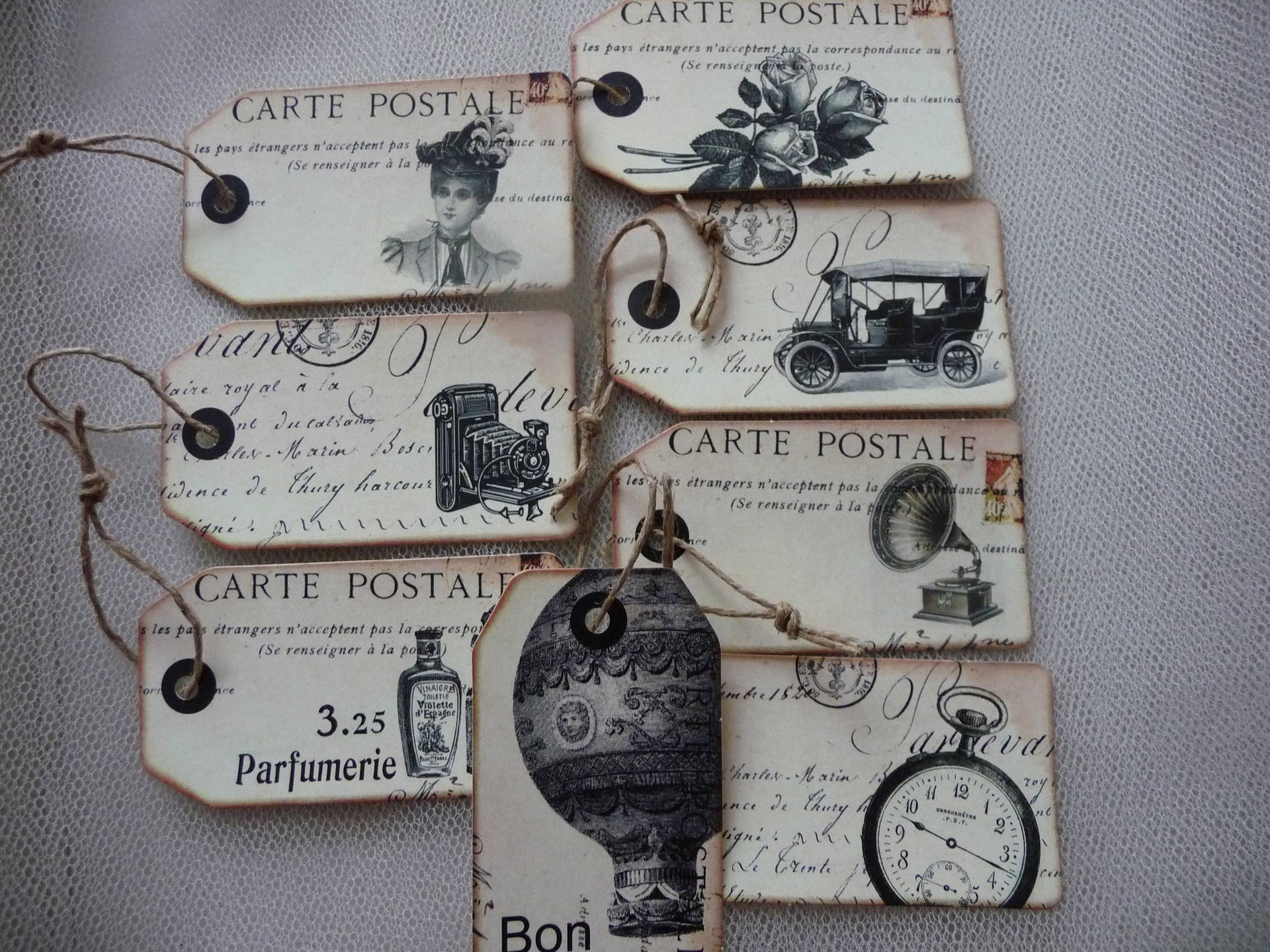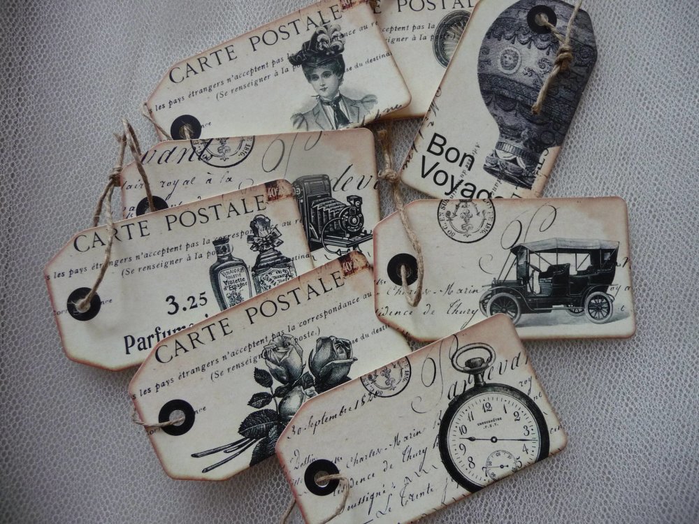 Je vous propose un ensemble de 8 étiquettes rétro (couleur sepia), format 9 cm x 5 cm. 8 illustrations différentes.