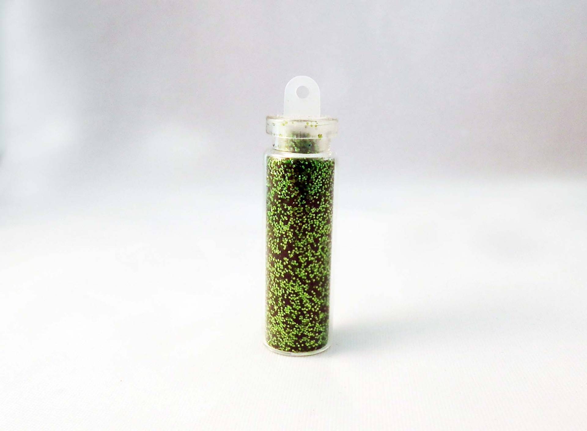 Fiole Tube en Verre et Paillettes Vertes scintillantes, 40mm X 12mm.