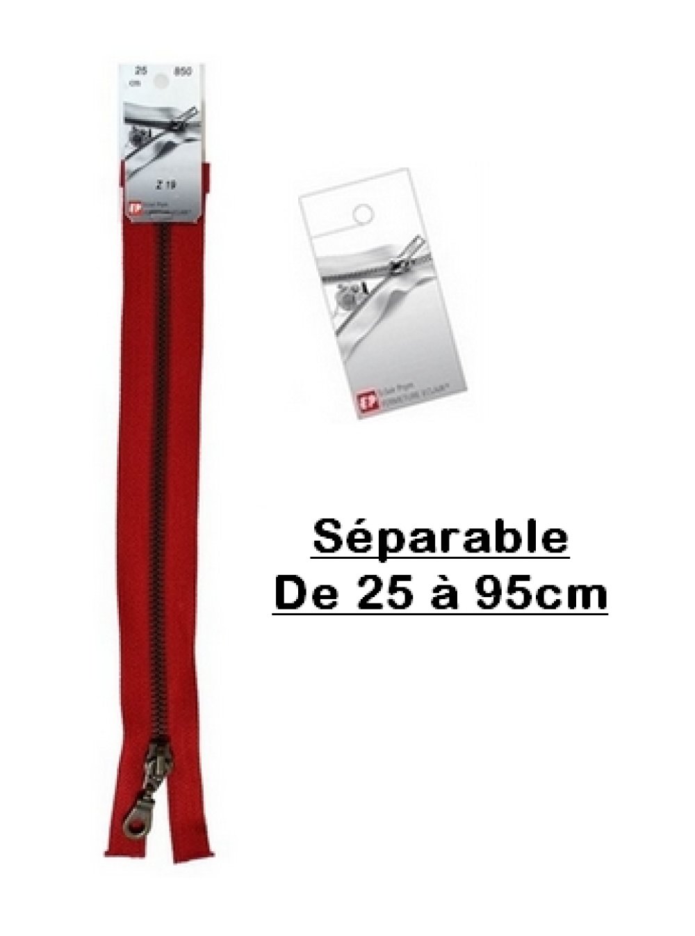 Fermeture métal séparable 65cm rouge pour blouson de la marque Eclair-Prestil Z19