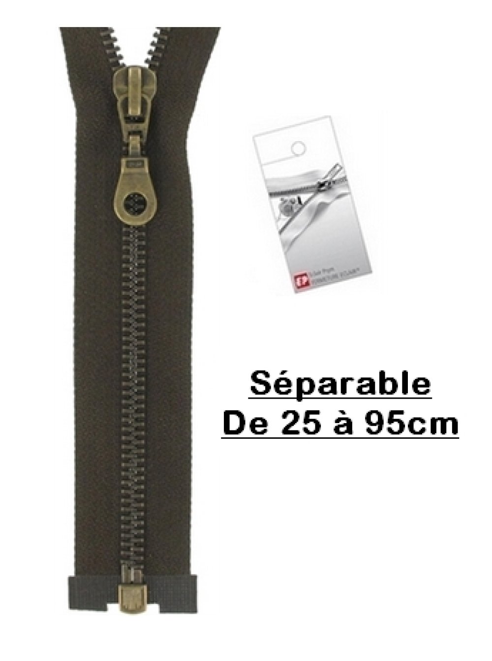 Fermeture Eclair 75cm marron foncé brou de noix séparable pour blouson de la marque Eclair-Prestil Z19