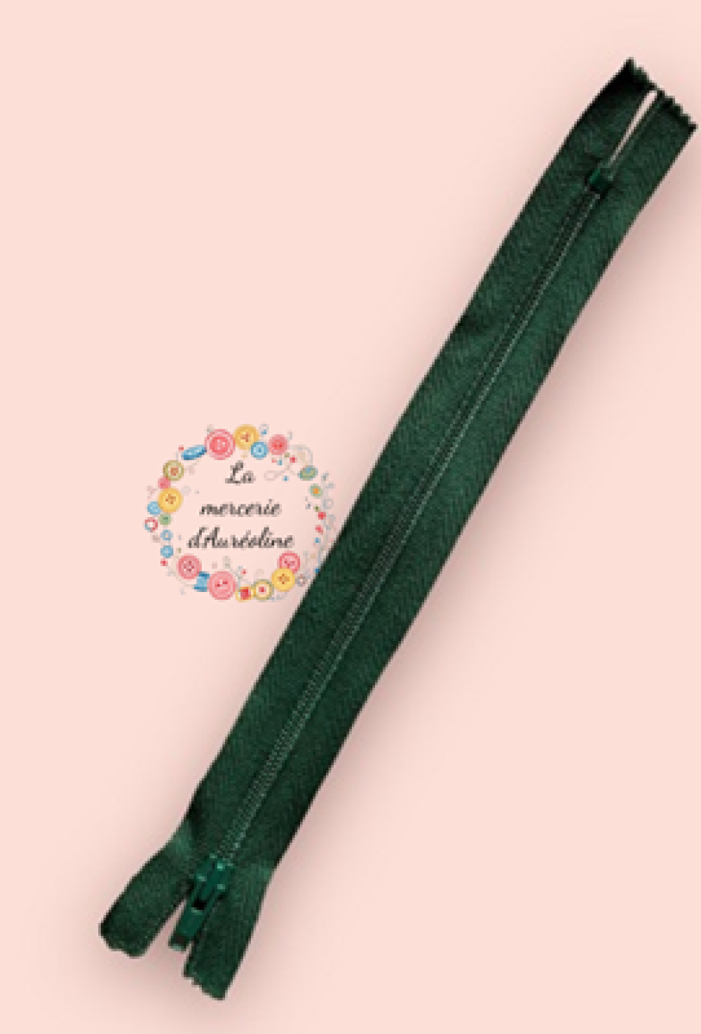 Fermeture éclair/à glissières non séparable de couleur verte de 18cm de long
