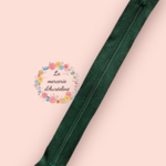 Fermeture éclair/à glissières non séparable de couleur verte, en coton avec un curseur et des mailles métal coloré.