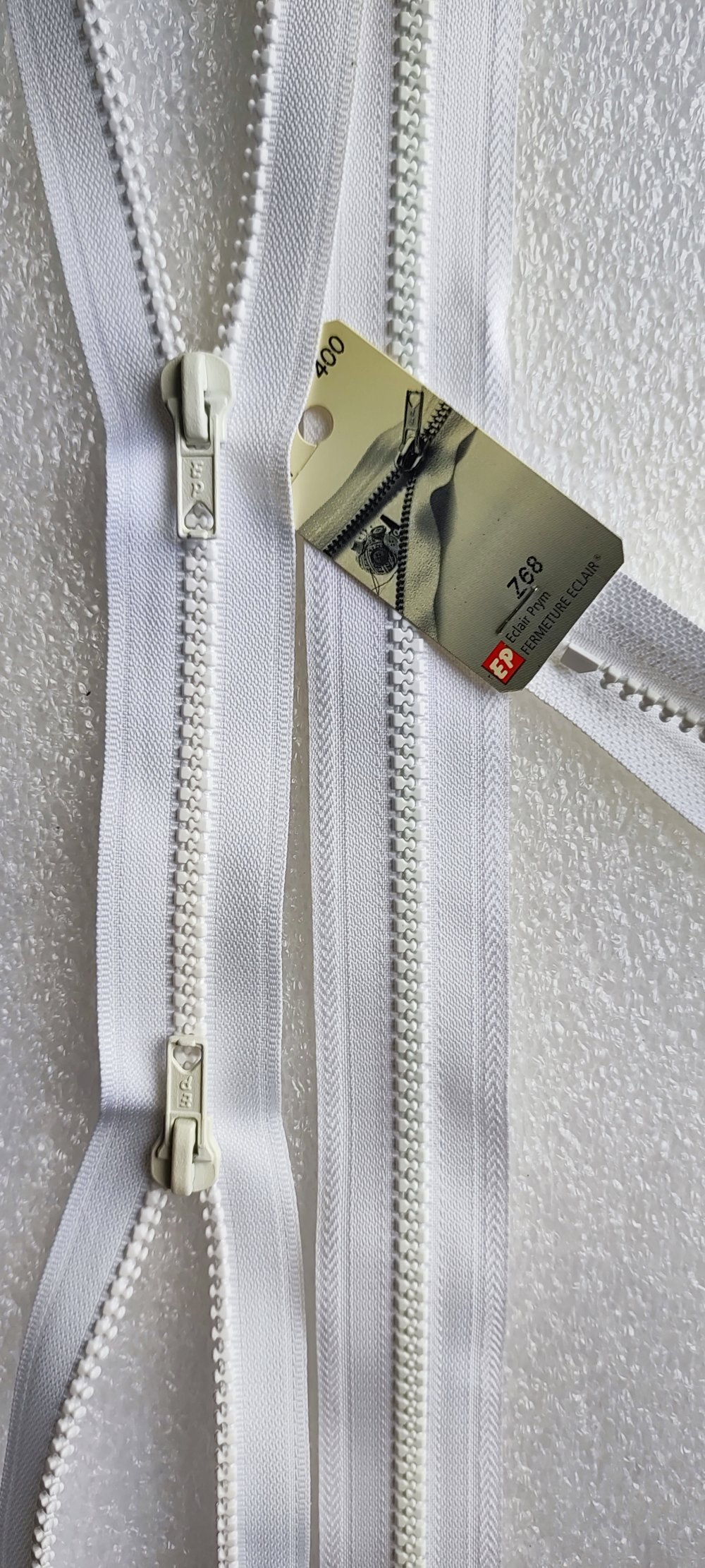 Fermeture Eclair double curseur séparable blanc 80cm cm Eclair-Prestil Z68