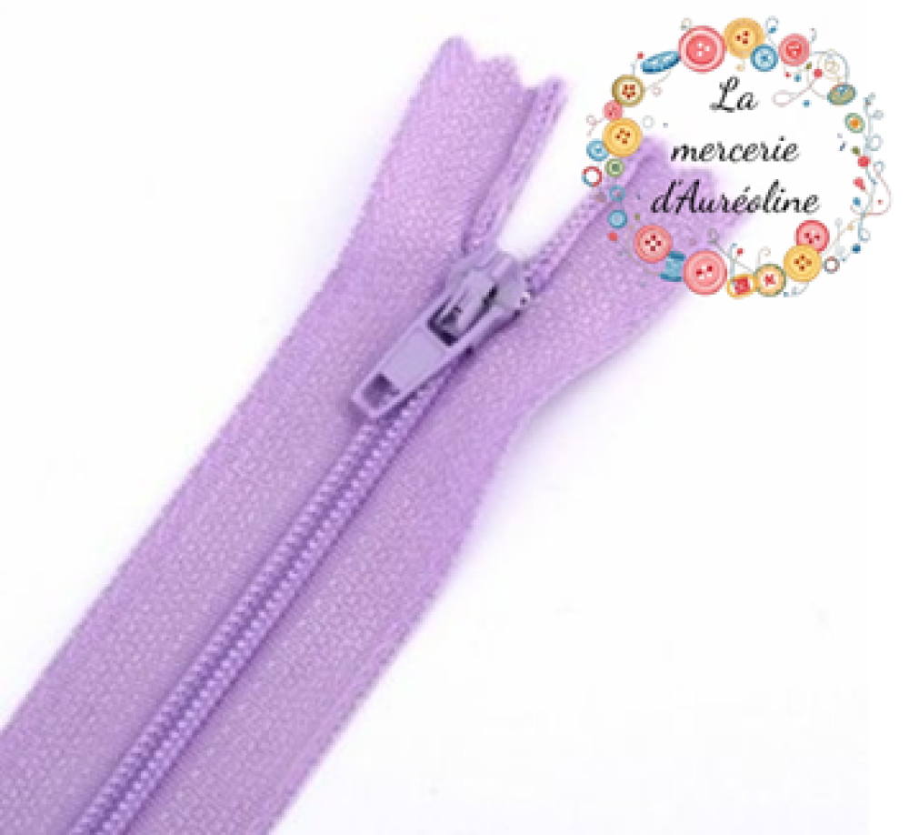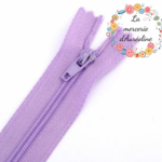 Fermeture éclair/à glissières non séparable de couleur violet clair ou améthyste, en nylon avec un curseur métal.