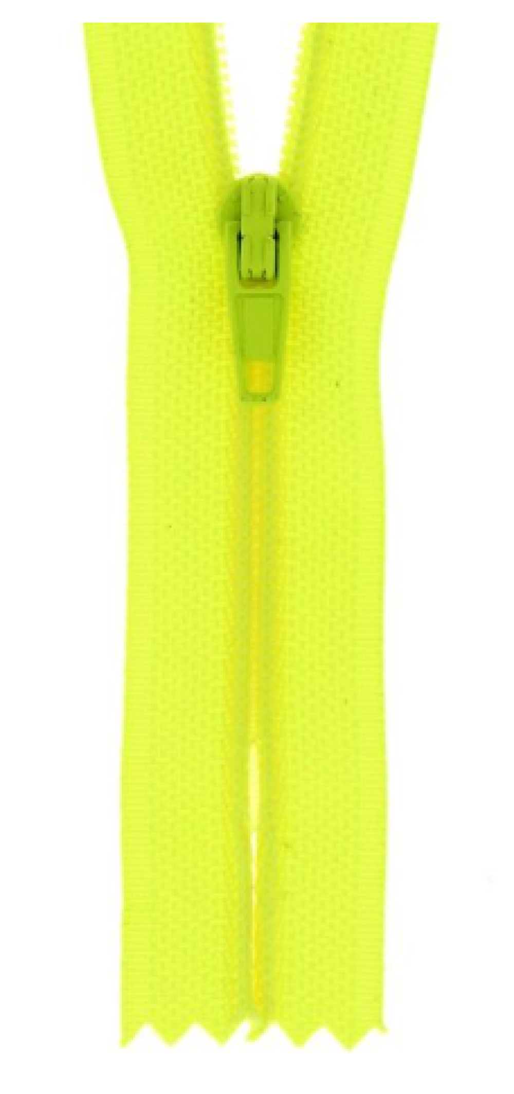 Fermeture éclair/à glissières non séparable de couleur jaune fluo, en nylon avec un curseur métal.