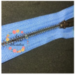 Fermeture éclair/à glissière séparable de la marque YKK, avec des mailles et une tirette en métal laiton bronze.