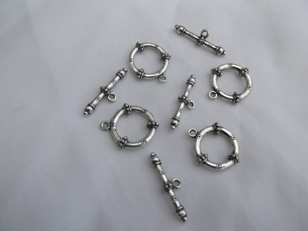 1 Set Fermoir Toggle Ciselé Argent Tibétain 32x9.5mm/26x22mm