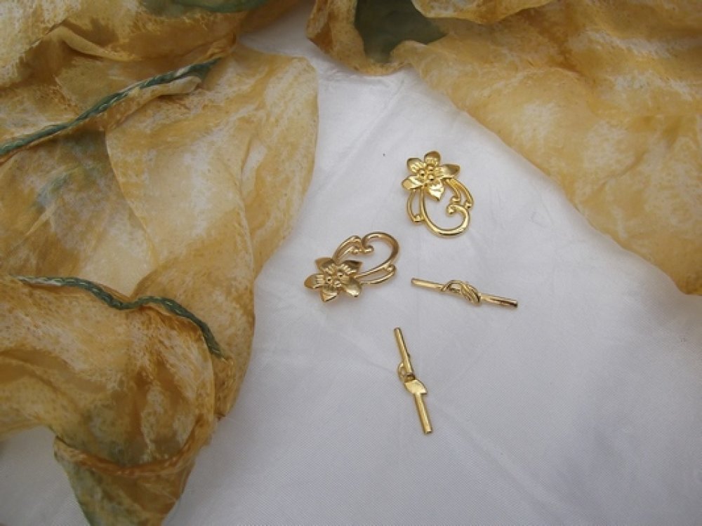 1 Set Fermoir Toggle Fleur Doré Lisse 20x30mm