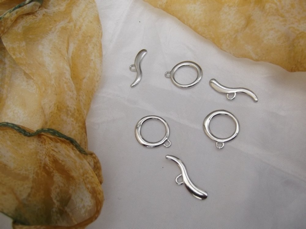 1 Set Fermoir Toggle Lisse Argent Tibétain 18mm/28x9mm Argenté brillant