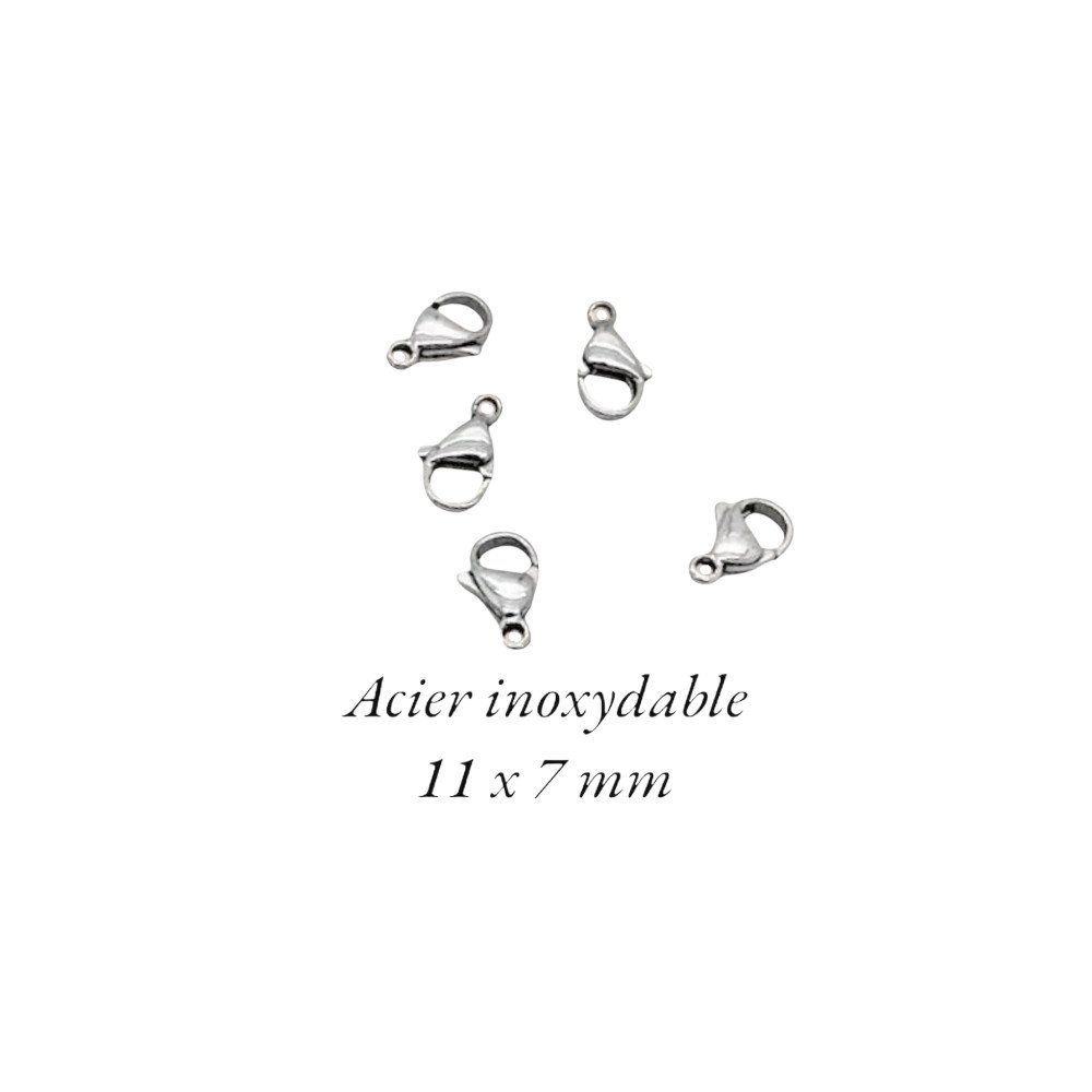 Lot composé de 10 fermoirs mousquetons en acier inoxydable 304.