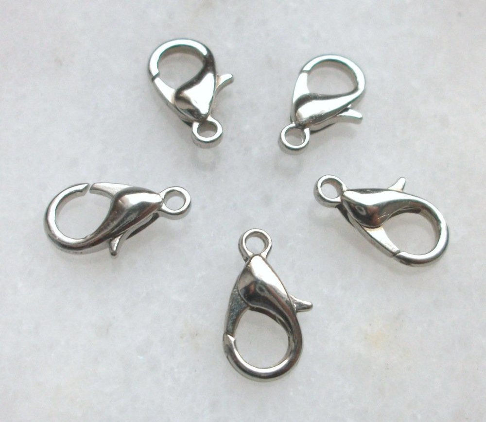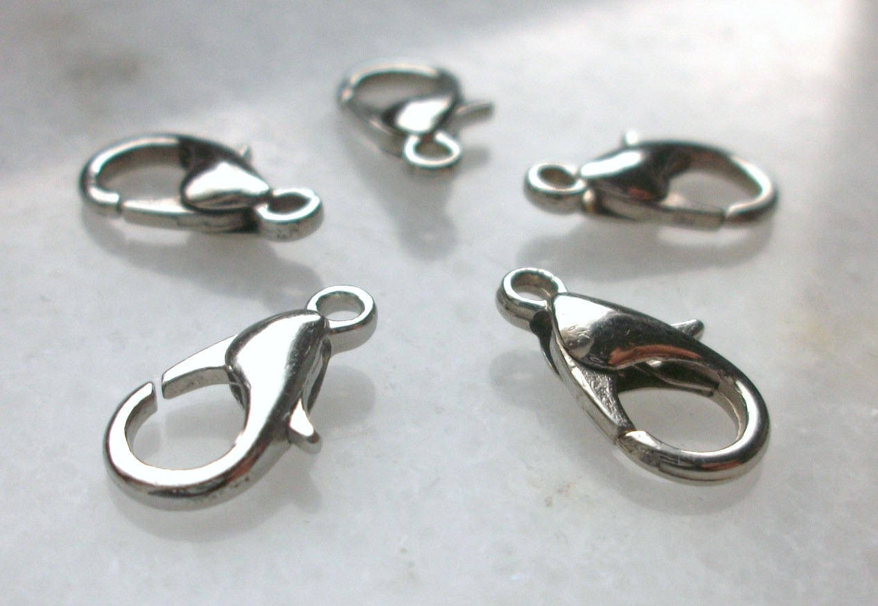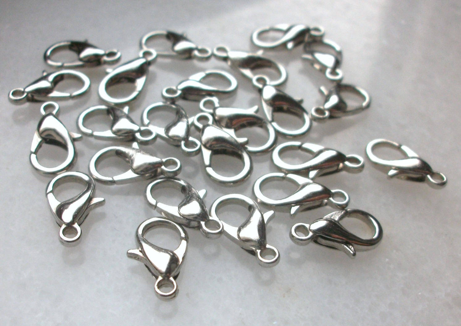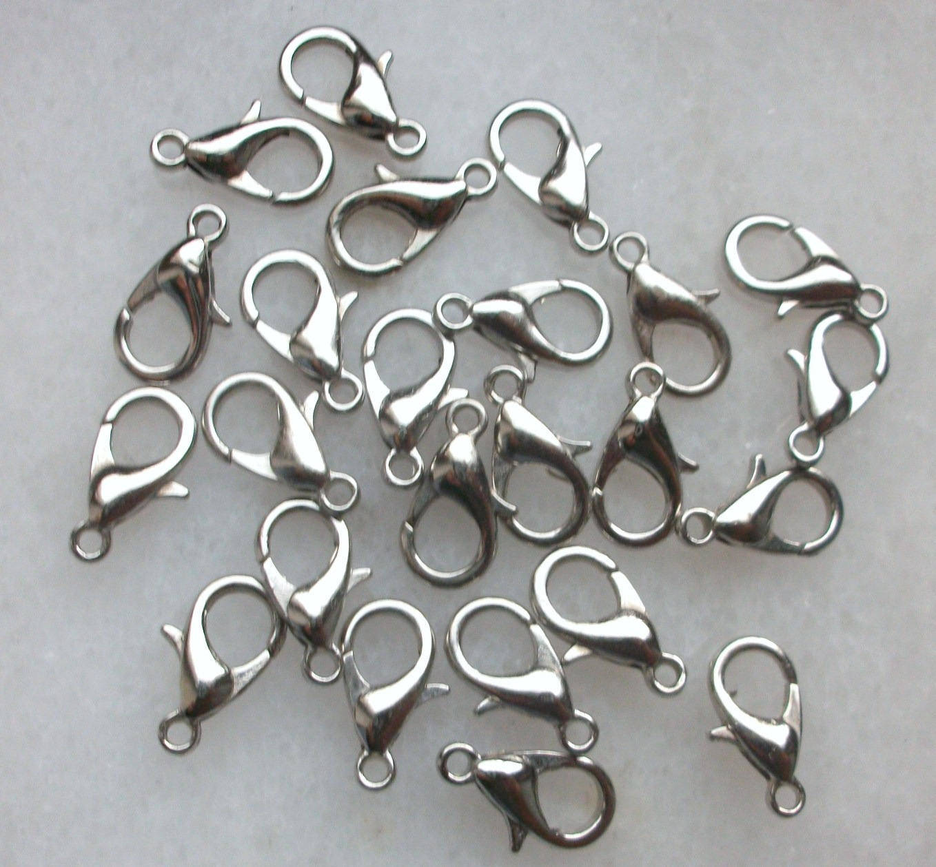Lot de 20 Fermoirs Mousquetons en Métal Argenté apprêt fabrication de bijoux Collier Bracelet.