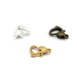 4 fermoirs mousqueton "coeur lisse" , 12x8 mm, argenté / doré / bronze