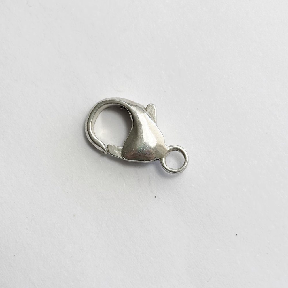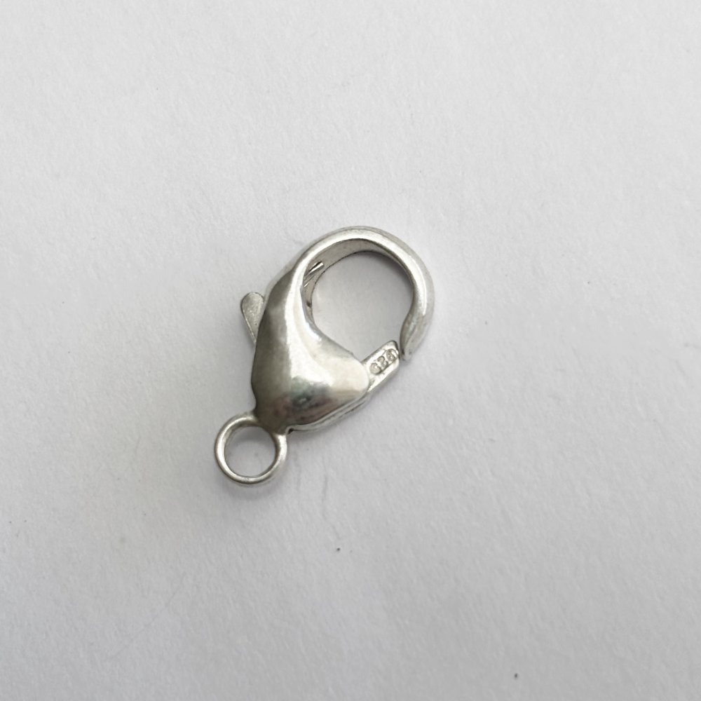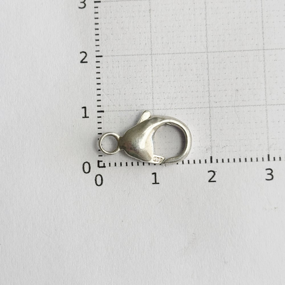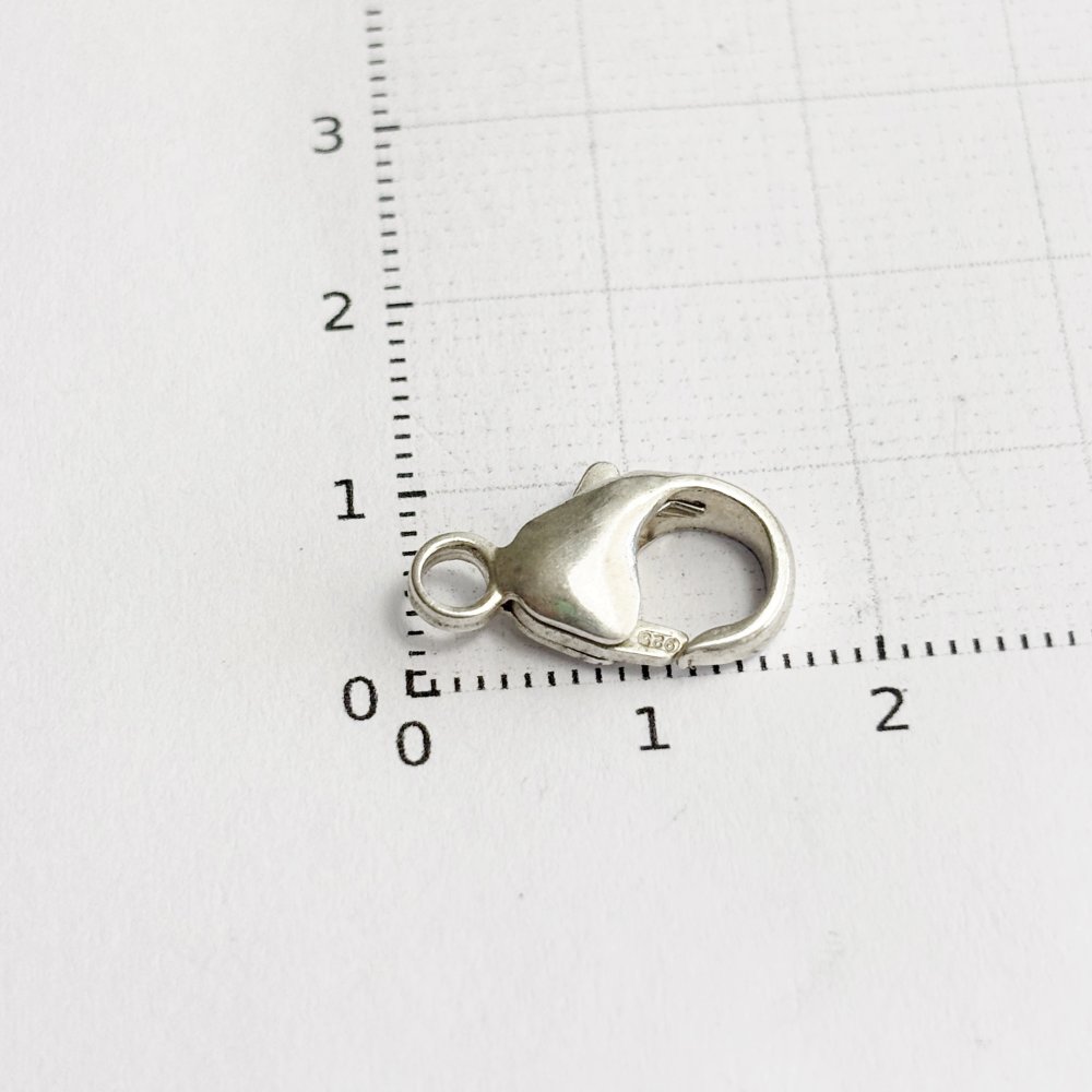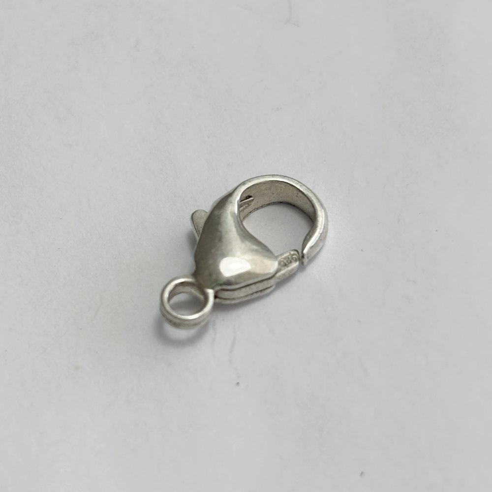 Fermoir mousqueton en argent 925 poinçonné, forme poire, longueur 16 mm, avec anneau de jonction solidaire - idéal pour vos bijoux de qualité.
