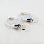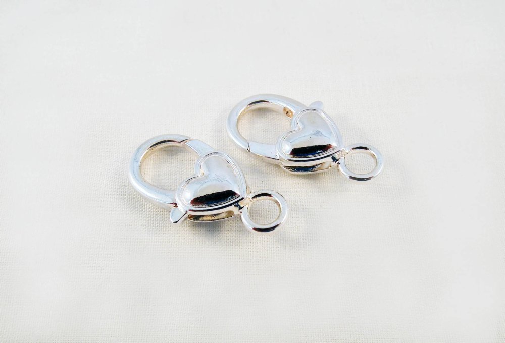 Lot de 2 Grands Fermoirs à mousqueton motif coeur, Argent Brillant, 28mm X 15mm, identiques sur les deux faces.