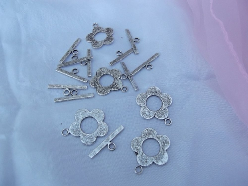 Lot de 2 Sets Fermoirs Toggle fleur 20x25mm