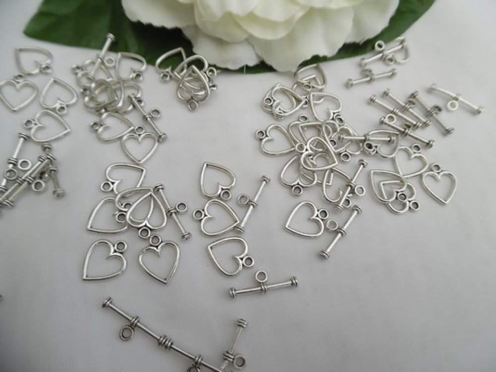 Lot de 3 Sets Fermoirs Toggle Coeur Argent Tibétain 18x11mm/18.5x6.5mm