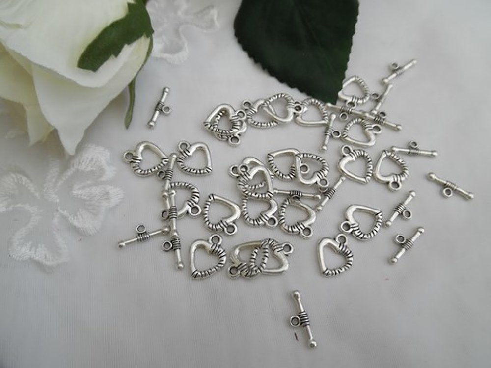 Lot de 3 Sets Fermoirs Toggle Coeur Argent Tibétain15x12mm/16x5mm