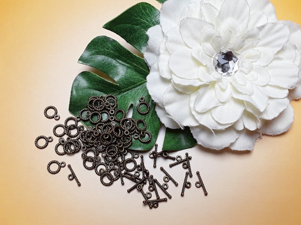 Lot de 5 sets Fermoirs toggle Bronze strié de 12x9mm-1.6x5mm