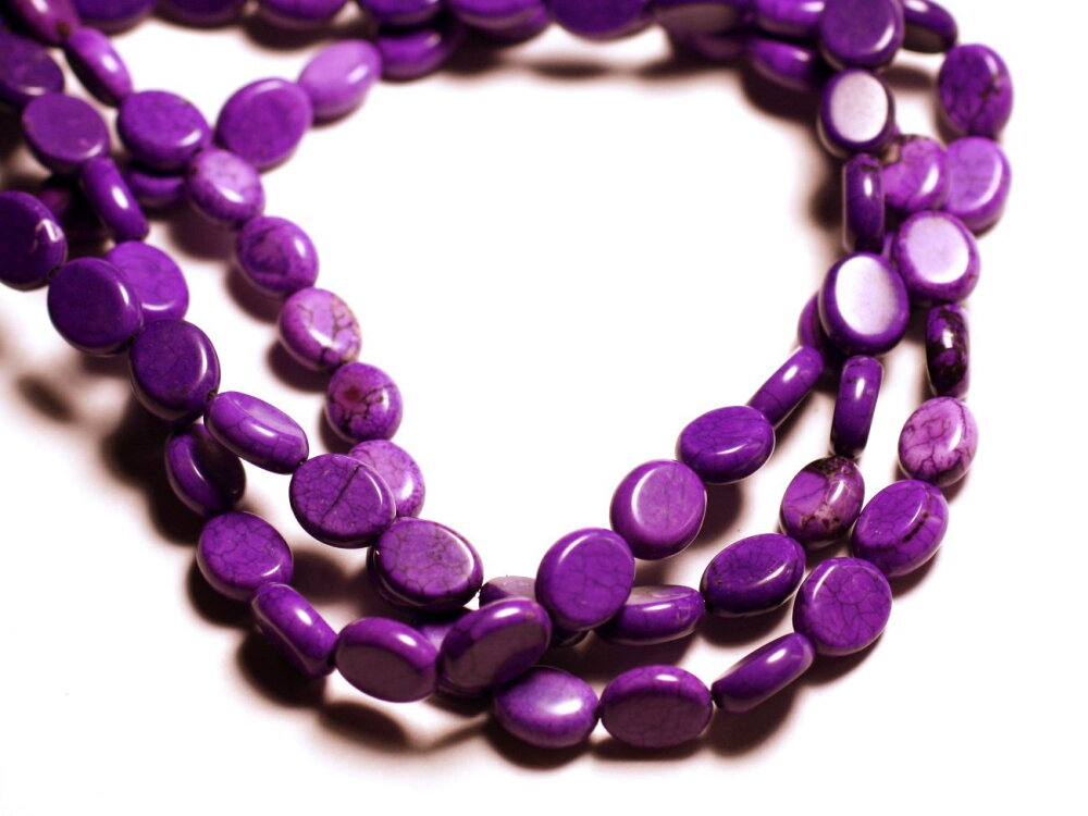 Fil 38cm 42pc environ - Perles Pierre Turquoise synthèse Ovales 9x7mm Violet
