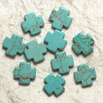 Fil 39cm 25pc environ - Perles Pierre Turquoise Synthèse Croix 15mm Bleu Turquoise