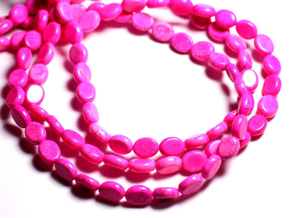 Fil 39cm 43pc environ - Perles Pierre Turquoise synthèse Ovales 9x7mm Rose Fluo