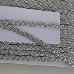Très joli galon tressé en fil métallique, argenté, mesure environ 6 mm de largeur,vendu au mètre.