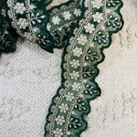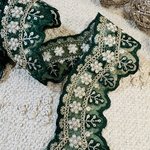 Apportez une touche de distinction à vos créations avec ce galon brodé doré sur fond vert sapin, une alliance raffinée entre l’intensité du vert profond et l’éclat du doré.