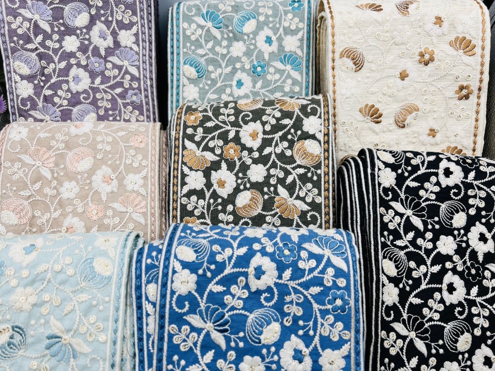 Chaque galon est choisi pour son originalité, son motif unique et la qualité de sa broderie ou de son tissage.