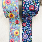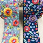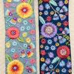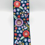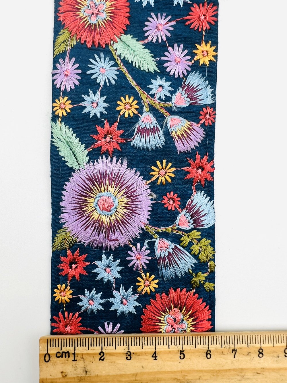 Ce galon brodé fond bleu nuit attire le regard par son contraste puissant et ses grandes fleurs éclatantes.