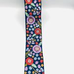 Galon brodé fond bleu nuit à grandes fleurs colorées, intense et élégant pour la couture, la déco ou vos créations uniques. Également disponible en bleu givré.
