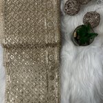 Apportez une touche somptueuse à vos créations avec ce galon extra large doré à bordure pointue, richement brodé et orné de détails scintillants.