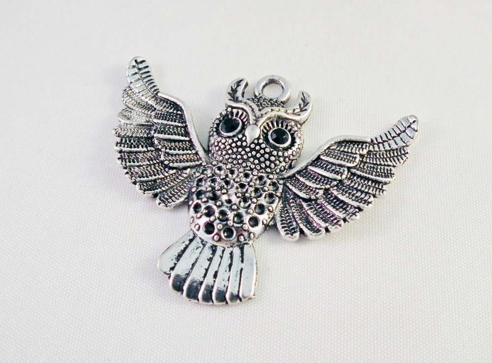 Grande Breloque Pendentif Hibou aux Yeux Noirs, 51mm X 45mm.