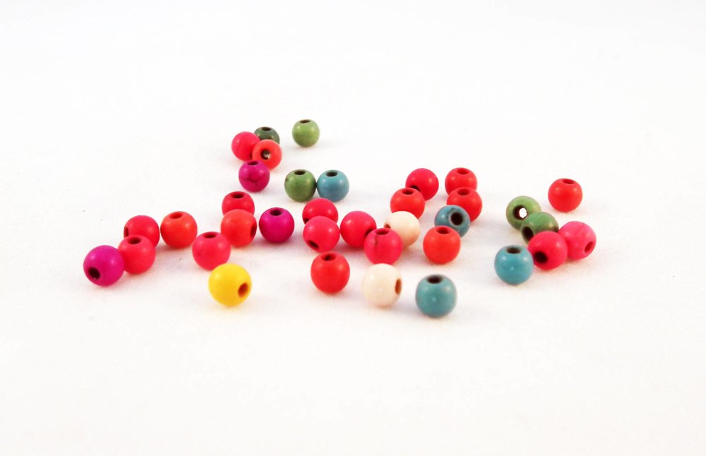 Lot de 10 Perles Howlite de couleurs mixtes rondes de 4mm.